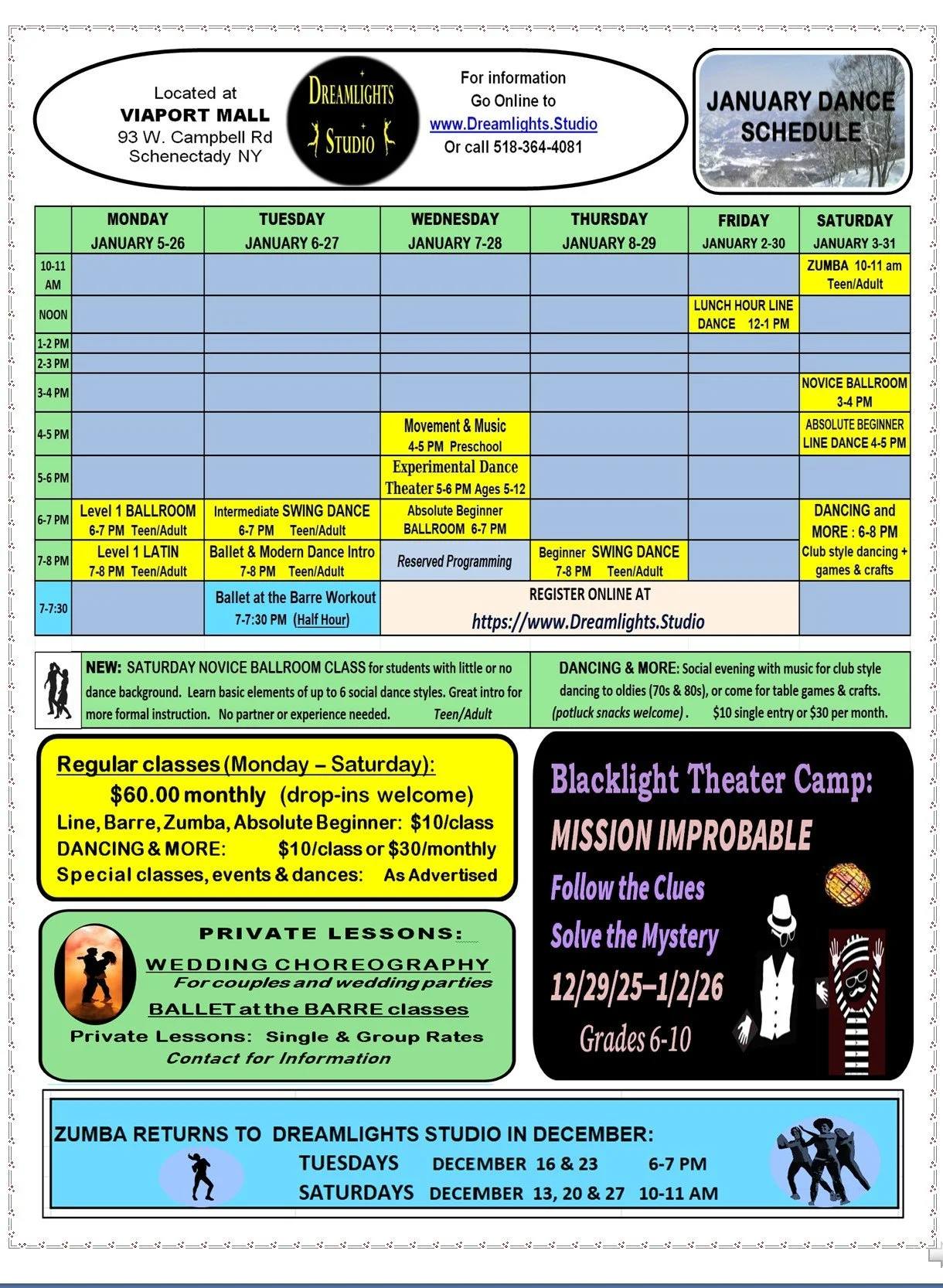 FEBRUARY CLASSES continue with open enrollment for new students.